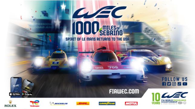 Kejuaraan FIA WEC Sebring sebagai putaran awal kompetisi 2023 akan berlangsung pada 18 Maret 2023. Lomba itu diawali dengan sesi latihan bebas, latihan resmi dan kualifikasi, diakhiri dengan lomba. (fiawec)