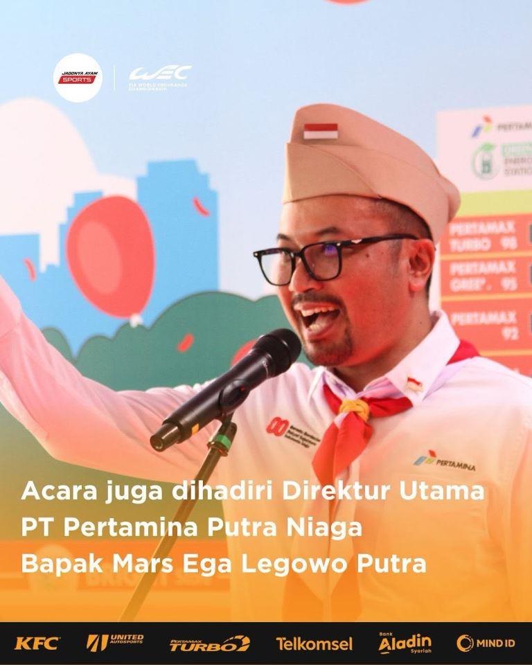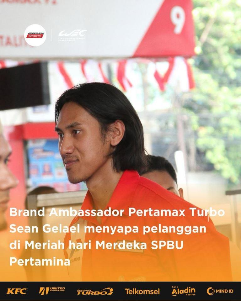 Sean Gelael yang tahun ini berlaga di jenis race ketahanan FIA WEC dan GT3 Dunia Eropa, menyapa para konsumen yang berdatangan ke SPBU itu.