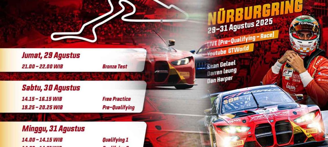Race 3 Hours of Nurburgring – Endurance Cup disiarkan langsung secara livestreaming di kanal youtube @GTWorld, dengan start pada Minggu (31/8) pukul 20.00 WIB. Sean Gelael berpartisipasi berkat dukungan dari KFC Indonesia, Pertamax Turbo, dan Livin’ by Bank Mandiri. (arl/wto)