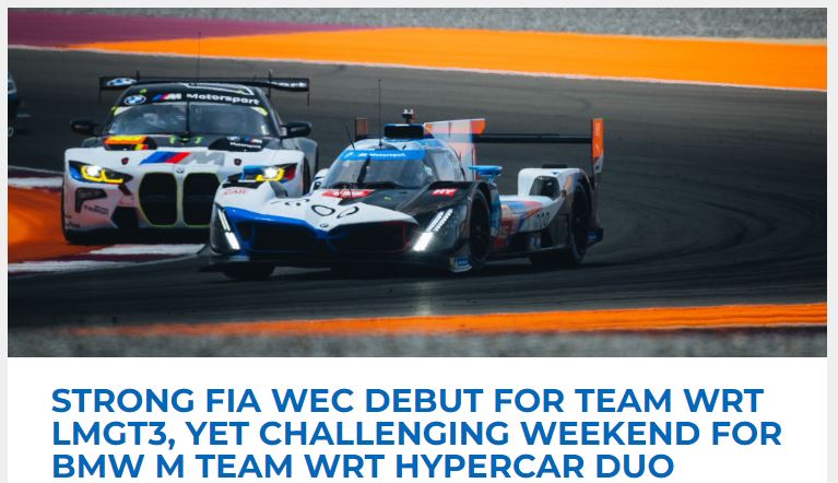 Strong Fia Wec Debut For Team WRT LMGT3, Yet Challenging Weekend For BMW M Team WRT Hypercar Duo