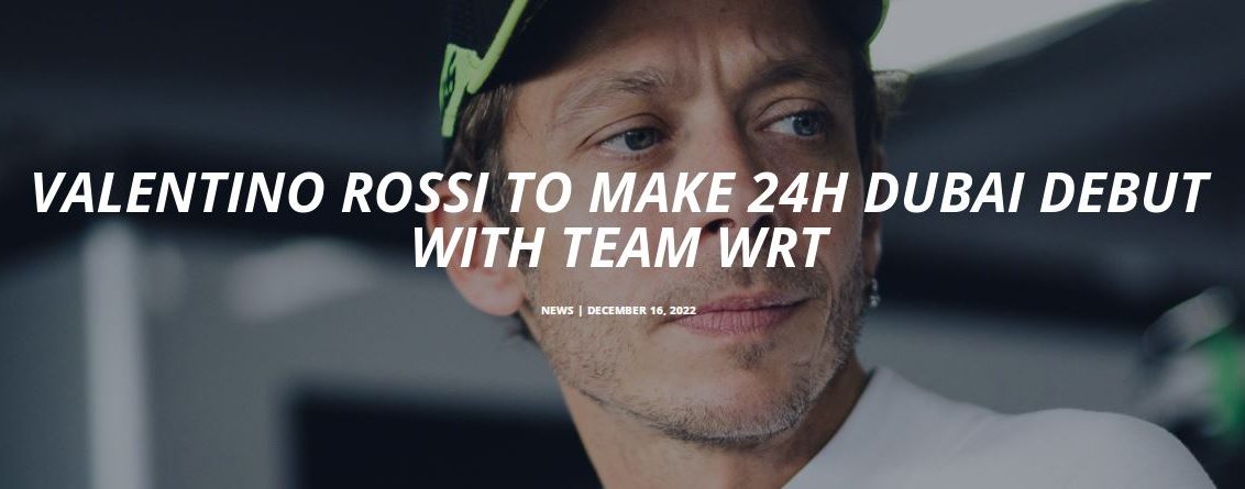 Nine-time Grand Prix motorcycle racing World Champion Valentino Rossi will make his 24H SERIES debut at the 2023 Hankook 24H DUBAI with two-time event winner, Team WRT.